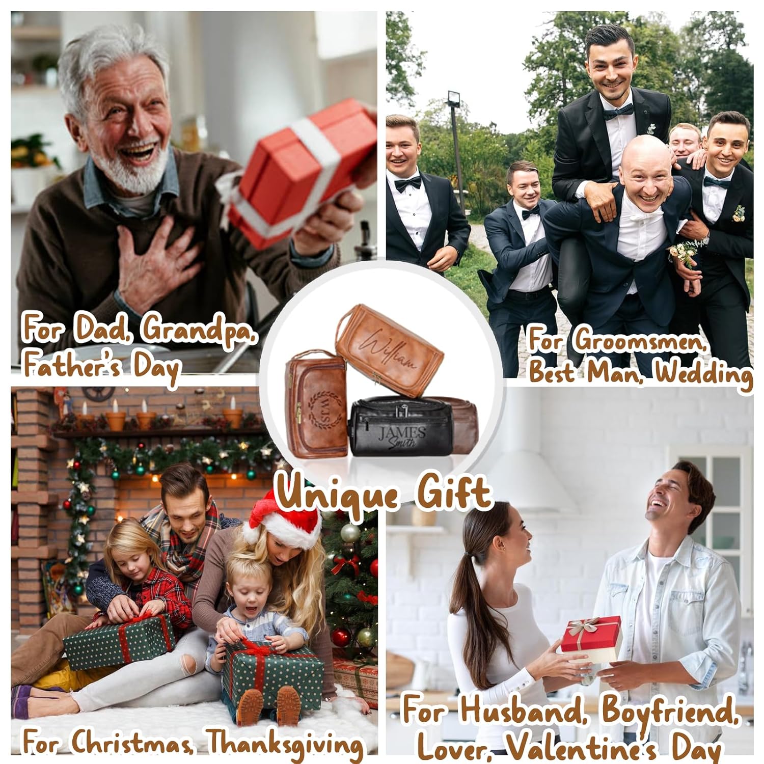 - [Meaningful and Thoughtful Gift] - Struggling to find the perfect gift for men? Our personalized men's travel bag toiletry kit with custom name engraving is a thoughtful and one-of-a-kind gift for your best man, son, wedding groomsman, father-in-law, dad, husband, boyfriend, brother, friend, or co-worker. It's suitable for various occasions like Father's Day, birthdays, Christmas, weddings, and anniversaries.